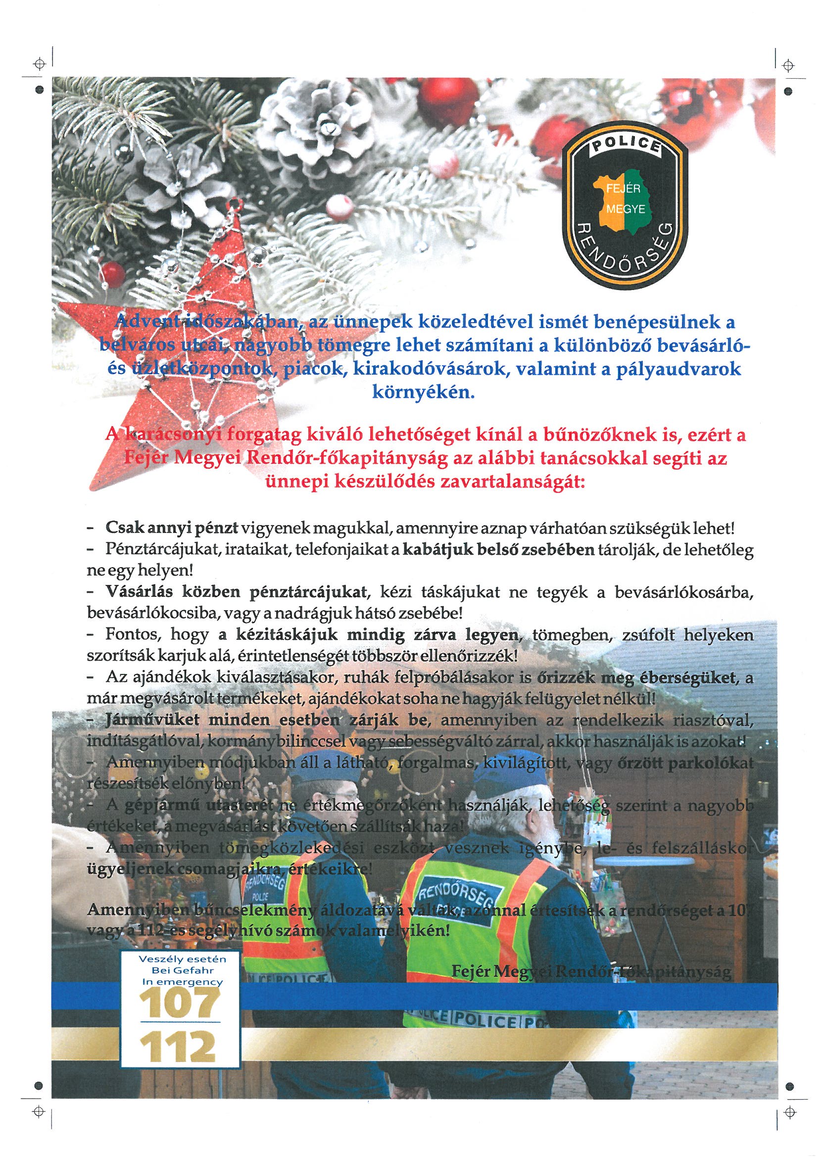 Rendőrségi felhívás az adventi időszakra vonatkozóan