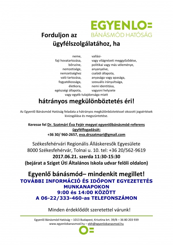 Egyenlő Bánásmód Hatóság tájékoztatója