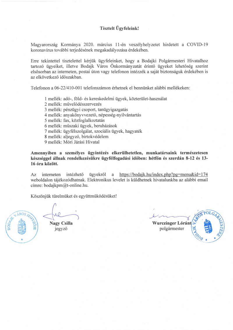 Járvánnyal kapcsolatos tájékoztatók