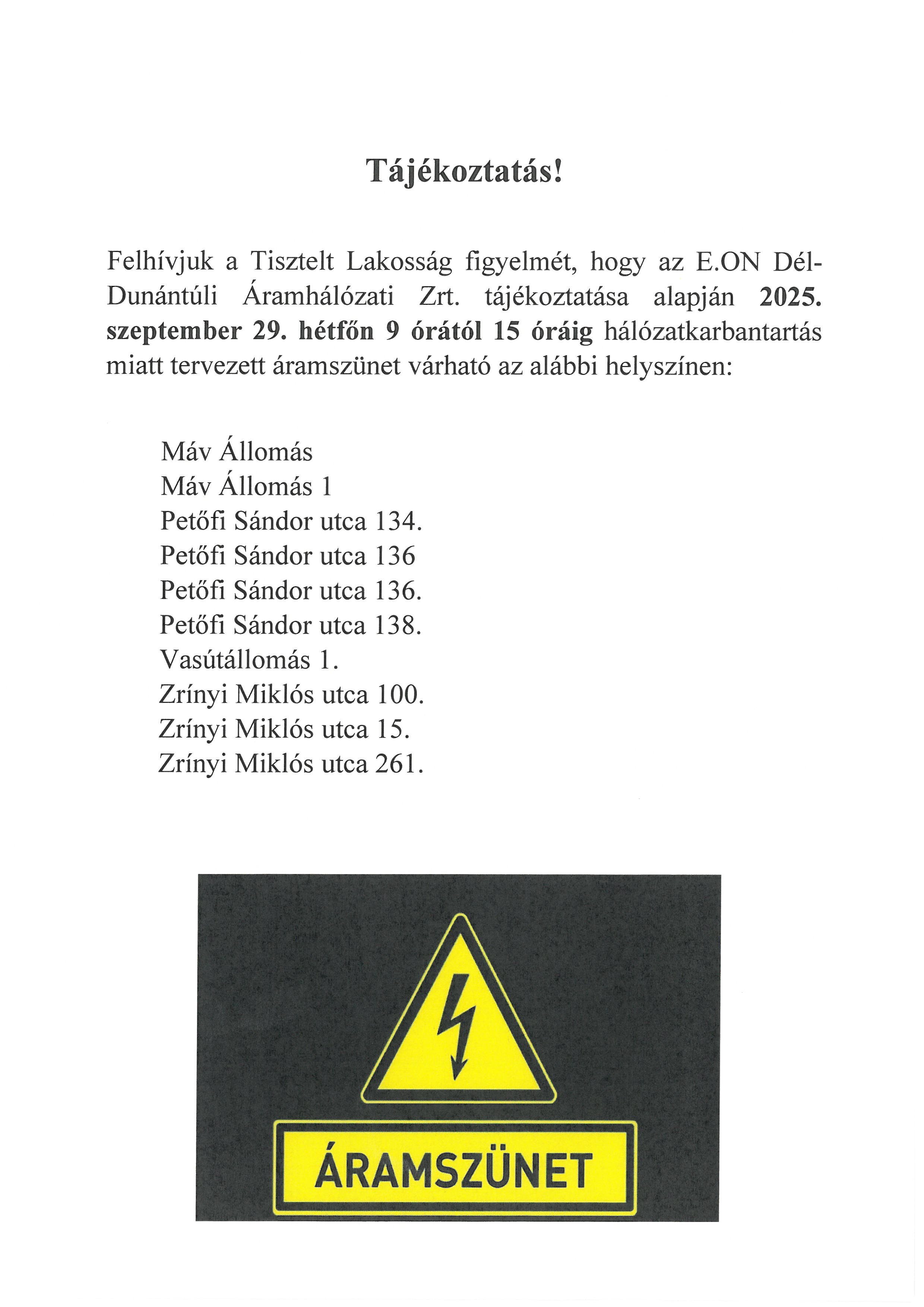 áramszünetről 2025. szeptember 29-én