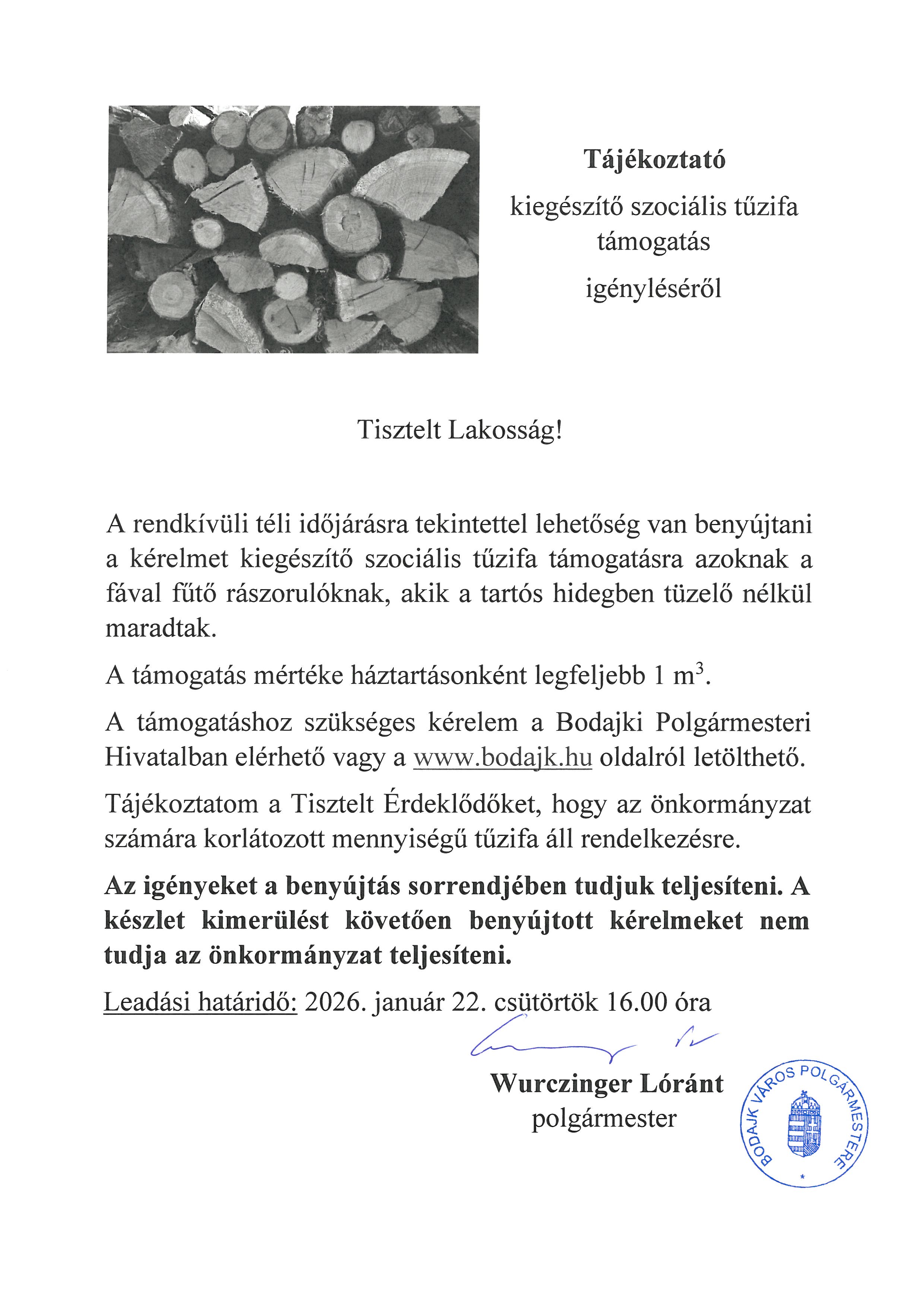 kiegészítő szociális tűzifa támogatás igényléséről