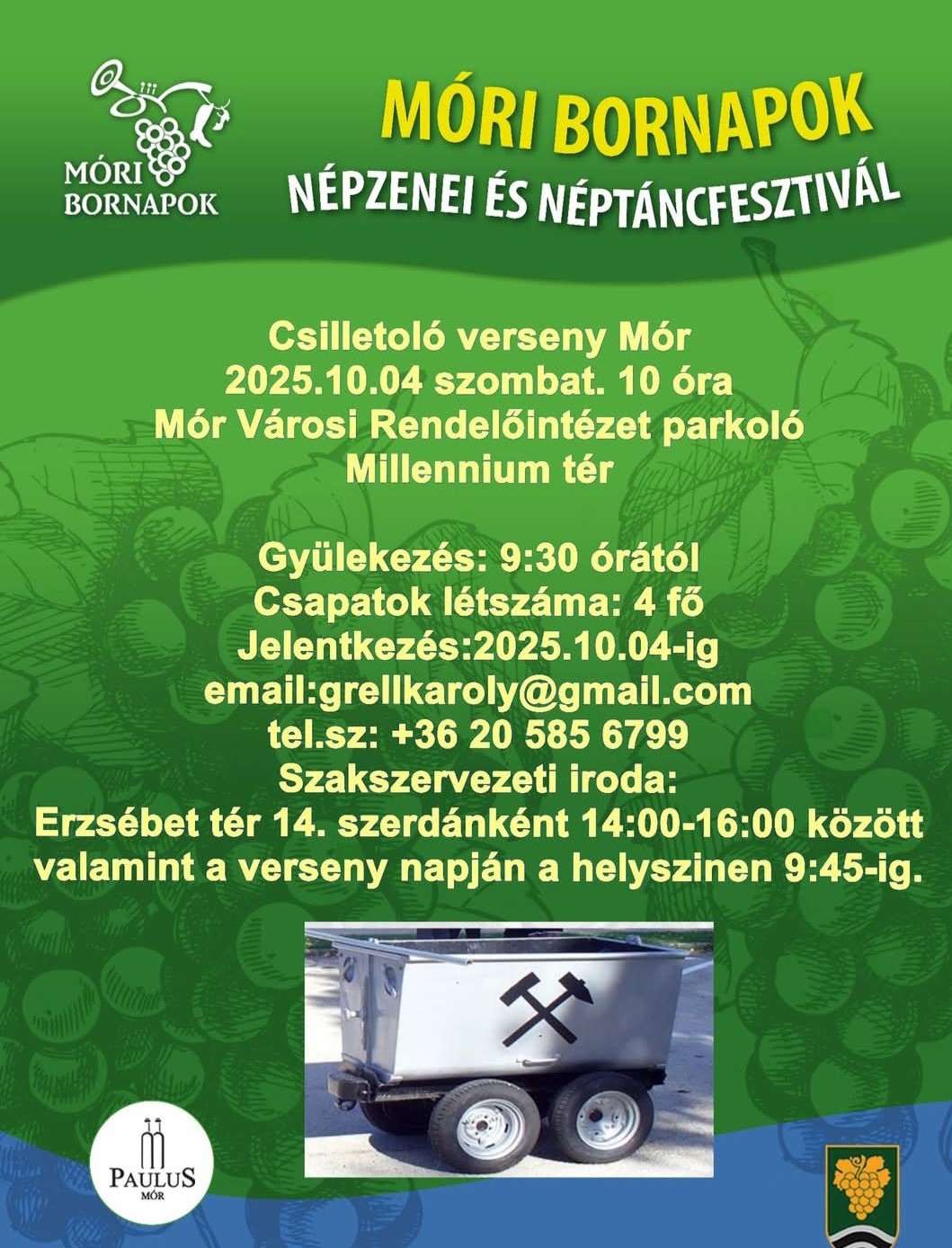 Bodajk lakossága Csilletoló versenyre kapott meghívást a Mór-Pusztavám Bányász Nyugdíjas Szervezettől, akik szeretettel hívnak és várnak egy 4 fős csapatot Bodajkról is, hogy képviseljék településünket a Bornapi rendezvények keretében Móron a csilletoló versenyen. A település zászlaját, vagy emblémáját a csillére is fel lehet rakni.