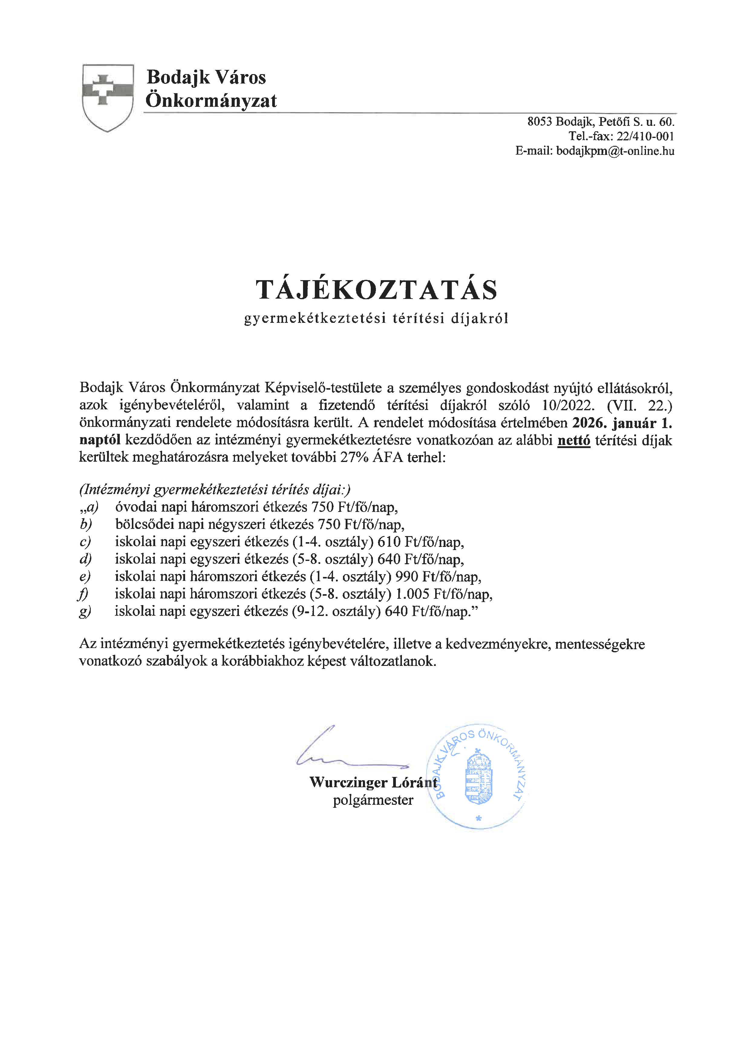 Bodajk Város Önkormányzat 2024. évi rendezvényterve